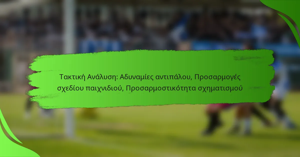 Η ανάλυση των αδυναμιών των αντιπάλων είναι κρίσιμη για την αποτελεσματική προσαρμογή τακτικών. Η παρατήρηση του πώς η αντίπαλη ομάδα αντιδρά σε διάφορους σχηματισμούς μπορεί να παρέχει πληροφορίες για τις ευπάθειές τους. Για παράδειγμα, αν ένας αντίπαλος δυσκολεύεται απέναντι σε υψηλή πίεση, η εφαρμογή ενός πιο επιθετικού σχηματισμού μπορεί να αποφέρει καλύτερα αποτελέσματα.