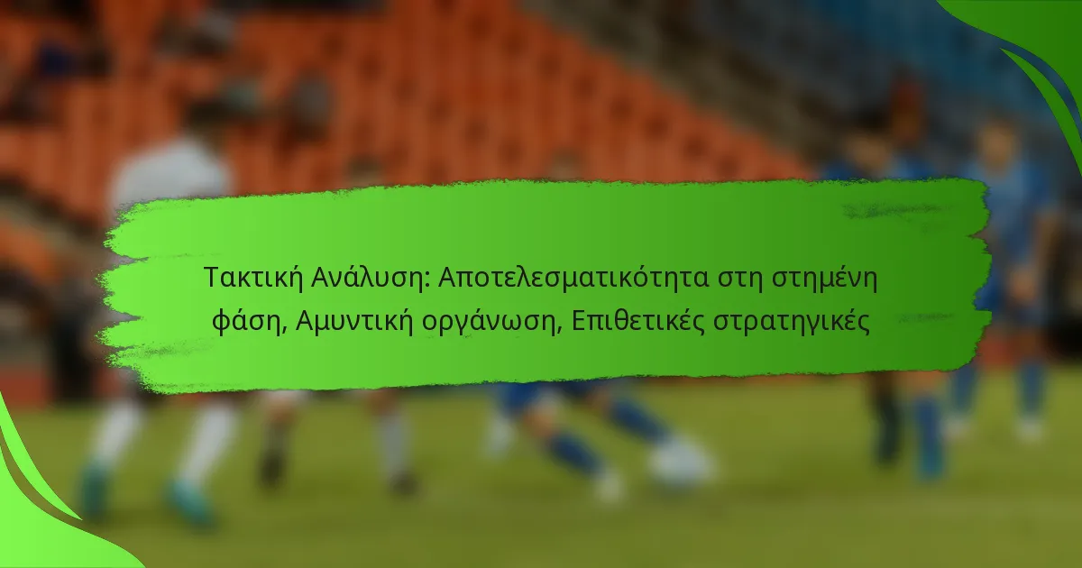 Η τακτική ανάλυση στο ποδόσφαιρο περιλαμβάνει τρία κρίσιμα στοιχεία: την αποτελεσματικότητα των στημένων φάσεων, την αμυντική οργάνωση και τις επιθετικές στρατηγικές. Οι καταστάσεις στημένων φάσεων προσφέρουν πολύτιμες ευκαιρίες για σκοράρισμα, ενώ η αμυντική οργάνωση επικεντρώνεται στην πρόληψη γκολ μέσω δομημένων σχηματισμών και επικοινωνίας. Παράλληλα, οι αποτελεσματικές επιθετικές στρατηγικές περιλαμβάνουν συντονισμένες κινήσεις και καινοτόμες τακτικές για την εκμετάλλευση των αδυναμιών των αντιπάλων και τη δημιουργία ευκαιριών για γκολ.